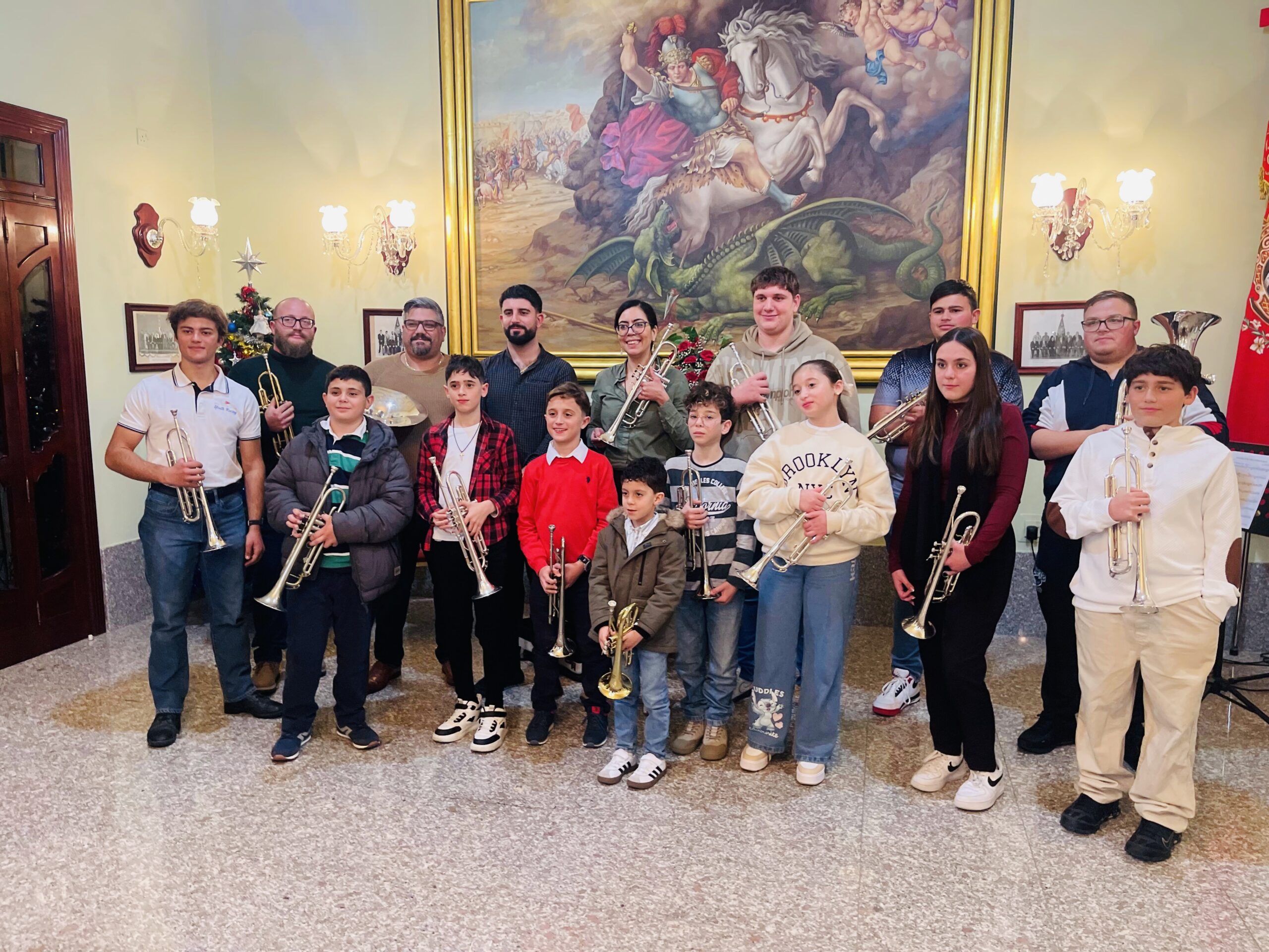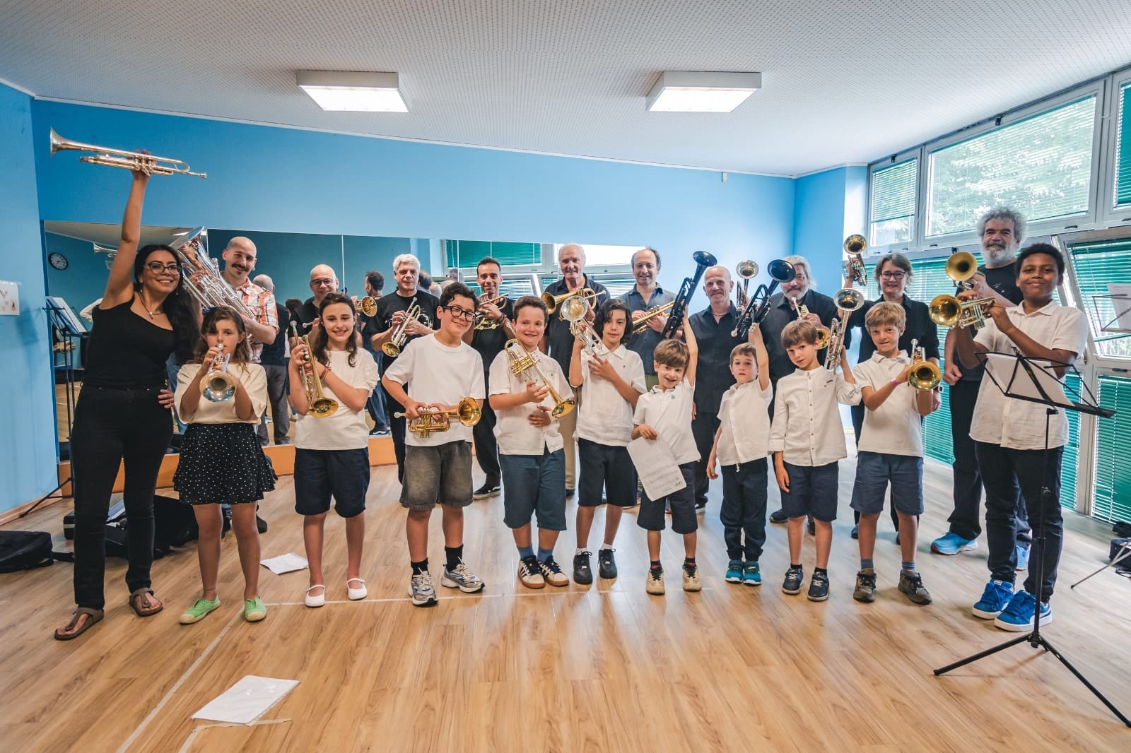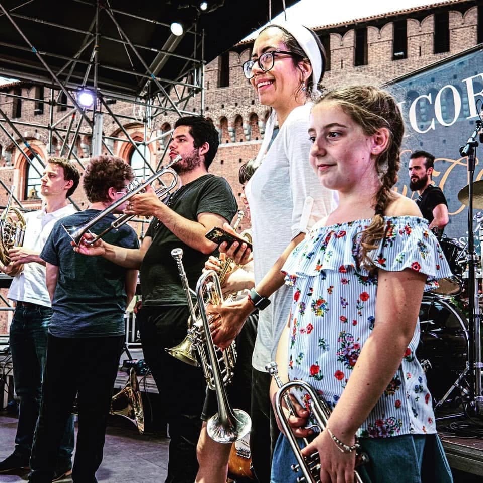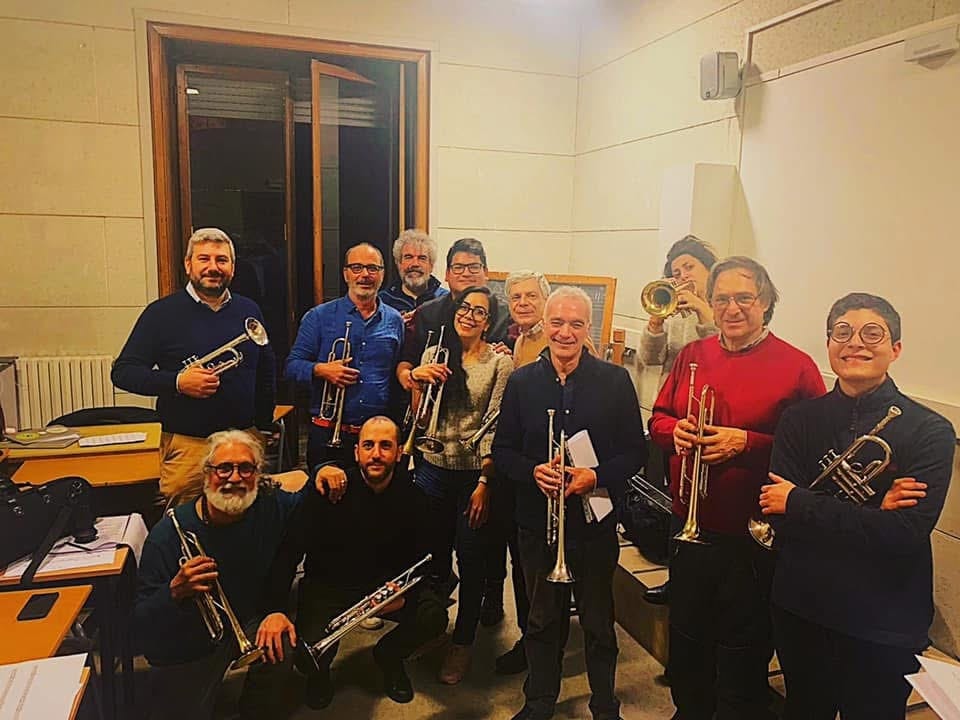 Testimonials before entering on stage to perform with the trumpet ensemble
